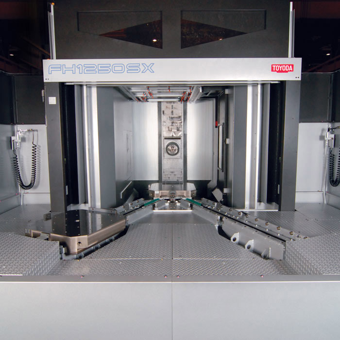 The FH1250SX is a powerful, high-speed horizontal machining center featuring a 6,000 RPM spindle, with options of an 8,000 RPM or 15,000 RPM high-torque spindle, and a rapid feedrate of 1,654 ipm (42 m/min). This machine has cylindrical roller guides for increased speed, and dual ballscrew drive on the Y and Z axes and a Meehanite cast iron base for maximum rigidity.